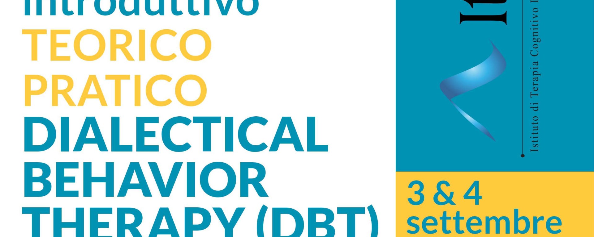 L’Associazione ITCI è lieta di presentare il corso “INTRODUTTIVO TEORICO – PRATICO ALLA DIALECTICAL BEHAVIOR THERAPY”. Corso ECM. La terapia dialettico comportamentale è stata ideata per il trattamento del disturbo borderline e successivamente applicata anche a molti altri disturbi. Prevede sia attività individuale che di gruppo. Il corso è accreditato ECM per tutte le professioni sanitarie e prevede 16.2 crediti. Iscriviti al corso.