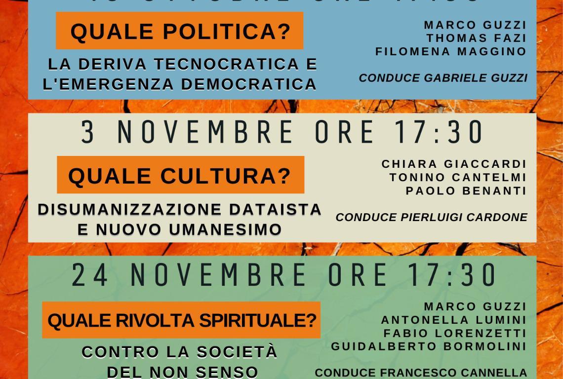 Il secondo appuntamento è il 3 novembre 2022: “Quale cultura? Disumanizzazione dataista e nuovo umanesimo”.